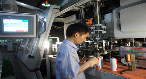 質檢員正在用罐二重卷封投影儀檢測卷封質量